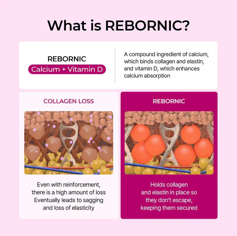From collagen-supporting Rebornic to antioxidant-rich Glutathione, every ingredient works together to deliver visible, lasting results.