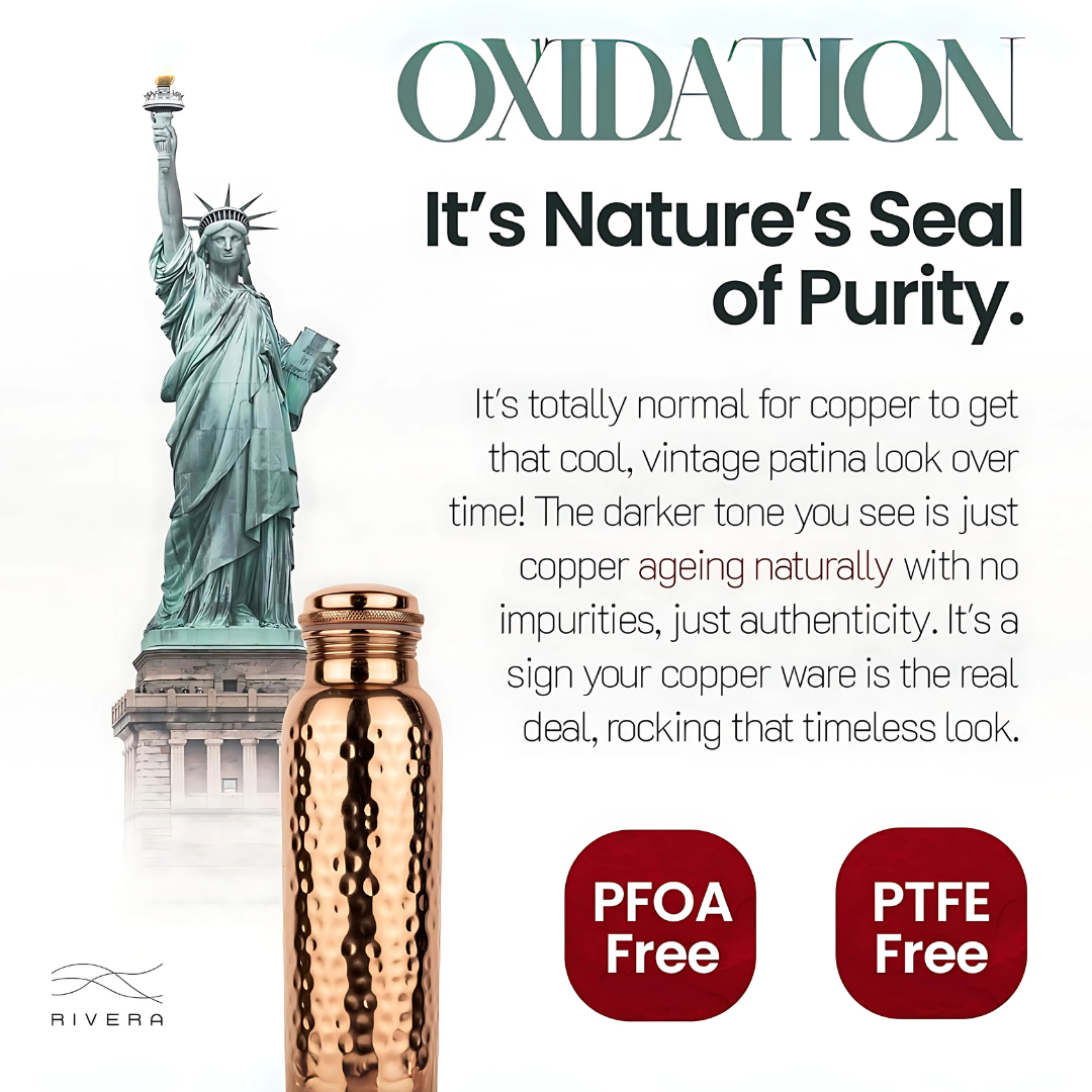 Copper water does more than hydrate — it helps your skin glow. Naturally antimicrobial and rich in antioxidants, it flushes out toxins for clearer, healthier skin. Sip daily with Rivera for that natural radiance.
